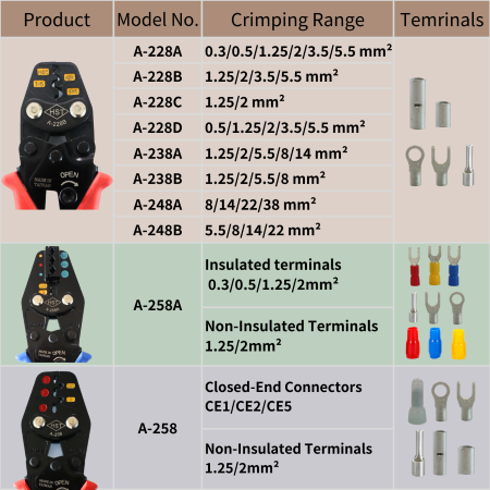A-258A (insulated terminal 0.3, 0.5, 1.25, 2/ non-insulated terminal 1.25, 2mm²)