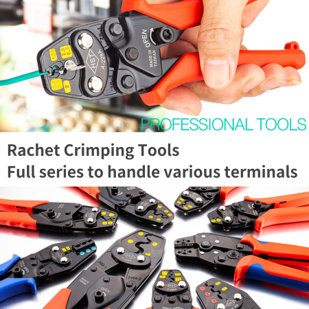 Crimping tool is a device that joins a wire to various terminals. The wire be stripped by Wire stripper, put the terminal onto the stripped end of the wire, and then use the crimping tools to apply pressure to the terminal to create a stable and reliable electrical connection. It’s widely used in electrical, electronic control, communication equipment and automotive, etc.