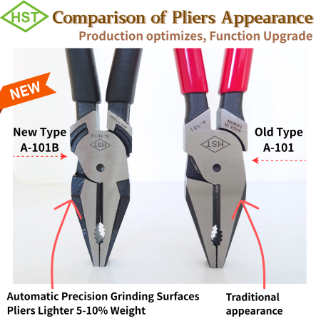 A-101B is latest type of combination plier develop by New Wealth (HST) development team, is lighter around 5-10% compared to the original A-101. A-101B also features high leverage design (rivet closer to pliers head), reduces effort by 20% more than old type, making steel wire cutting easier. This enhances technician convenience, allowing technicians to finish cutting, clamping and unscrewing with a single tool New Wealth A-101B.