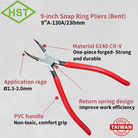 A-130A complies with European standard design, offering return spring and it’s one-piece forging, strong and durable. New Wealth company has the full series of circlip pliers in bent and straight head, it can easily enter narrow holes and improve work efficiency. It’s suitable for internal structures such as bearing seats and mechanical equipment. Suitable for automobile maintenance and equipment installation.